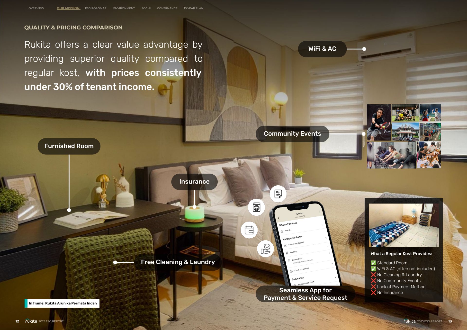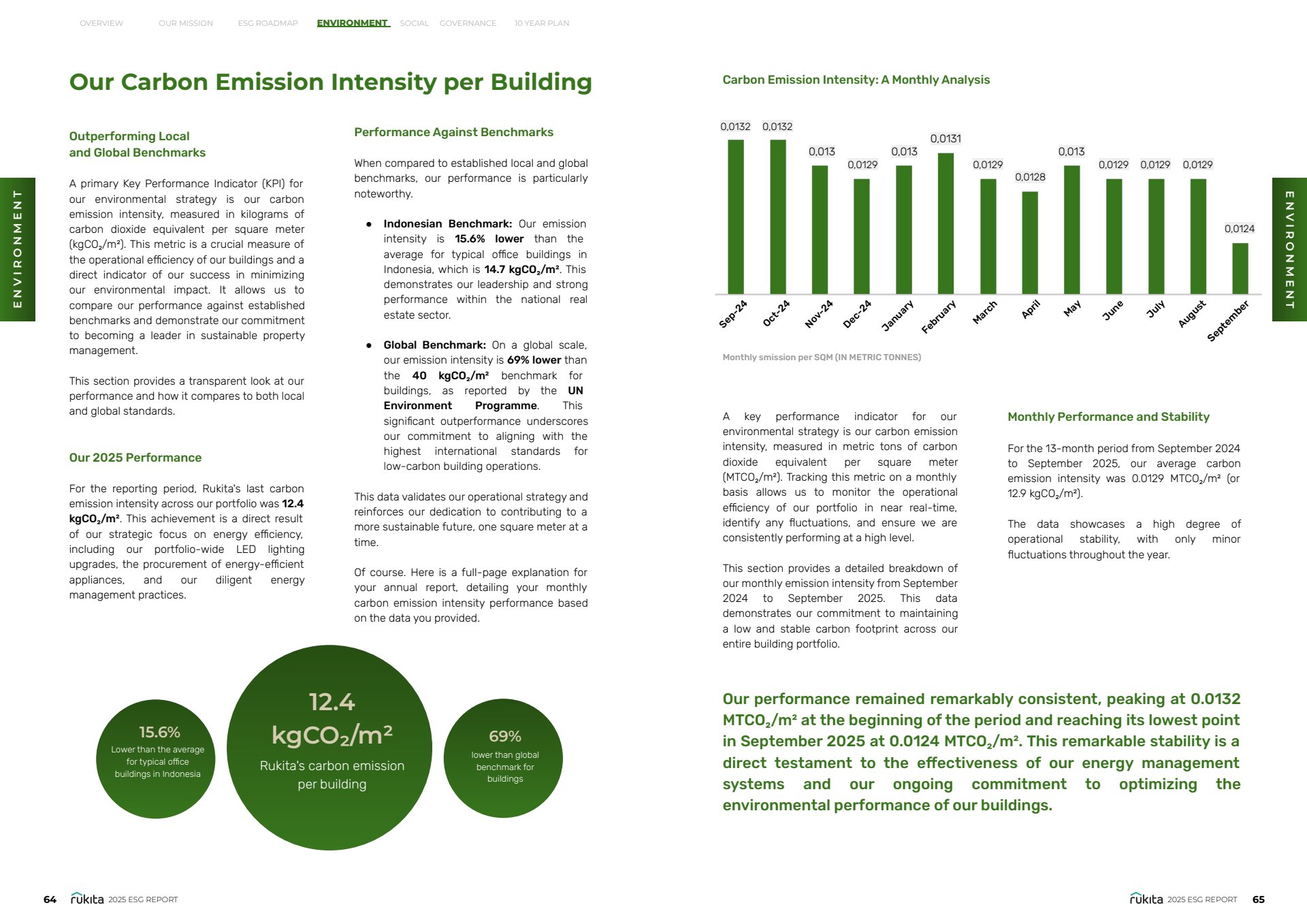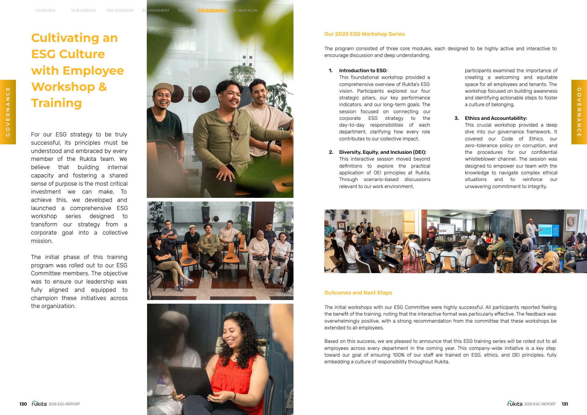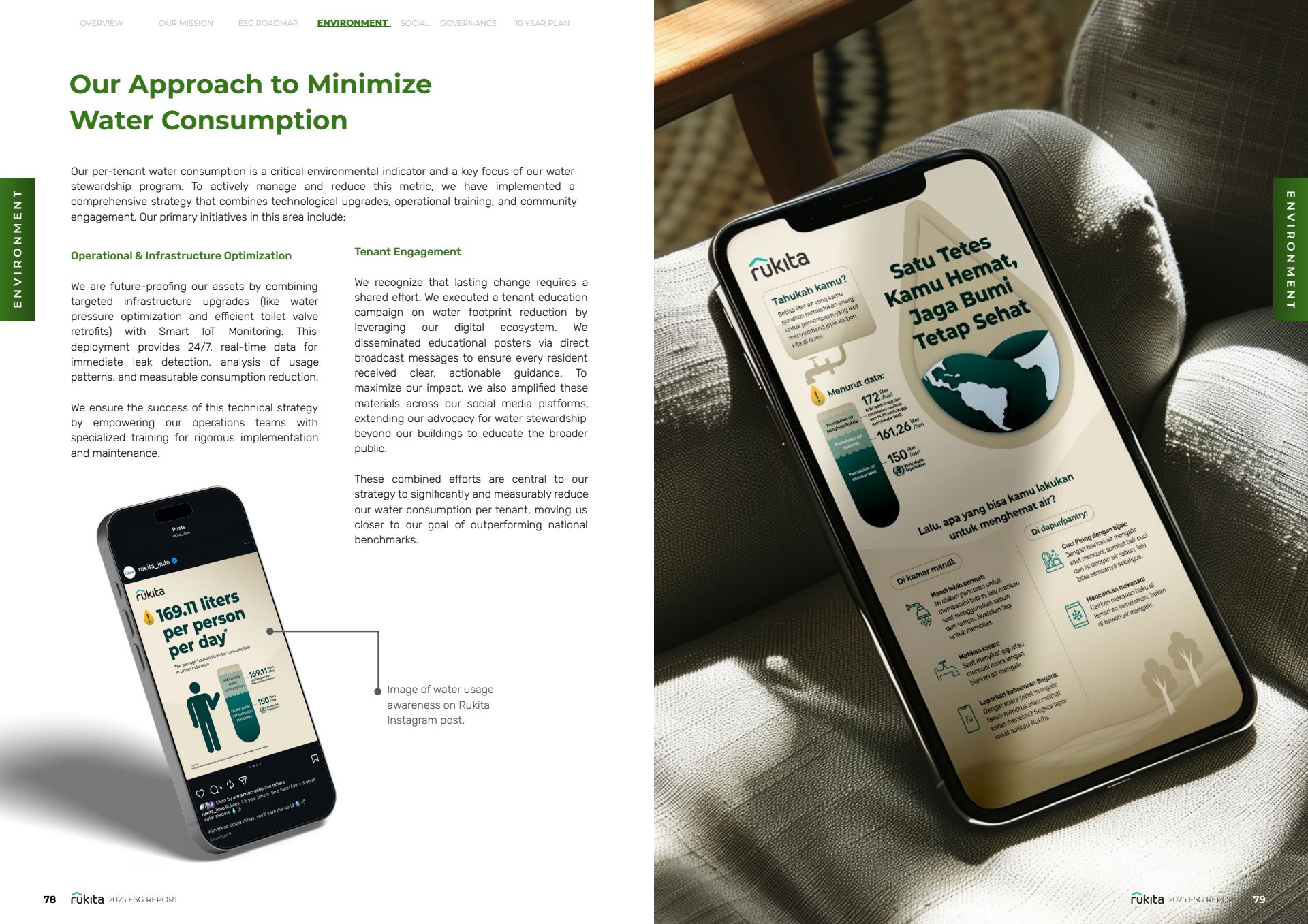 Through thoughtful visual hierarchy and strategic use of infographics, the report presents Rukita’s ESG progress in a way that reinforces trust, accountability, and long-term impact while maintaining alignment with the company’s brand identity.